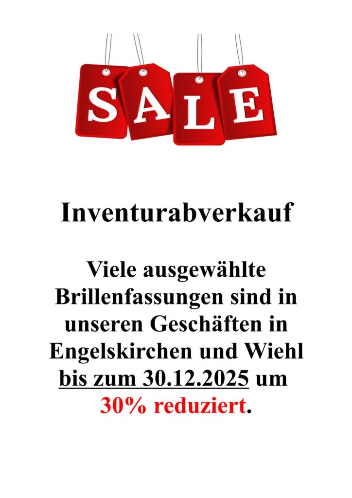 Inventurabverkauf bei KuH-Brillen in Engelskirchen und Wiehl.